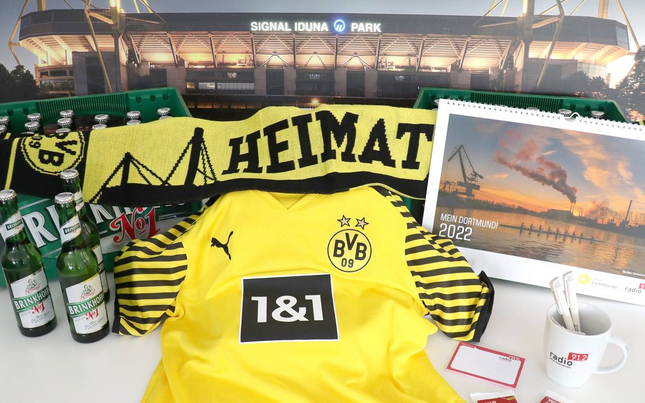 Jeden Samstag verlosen wir ein tolles BVB-Fanpaket mit einem BVB-Trikot, Schal und einem Kasten Brinkhoff's. Einfach Radio einschalten und mitmachen.