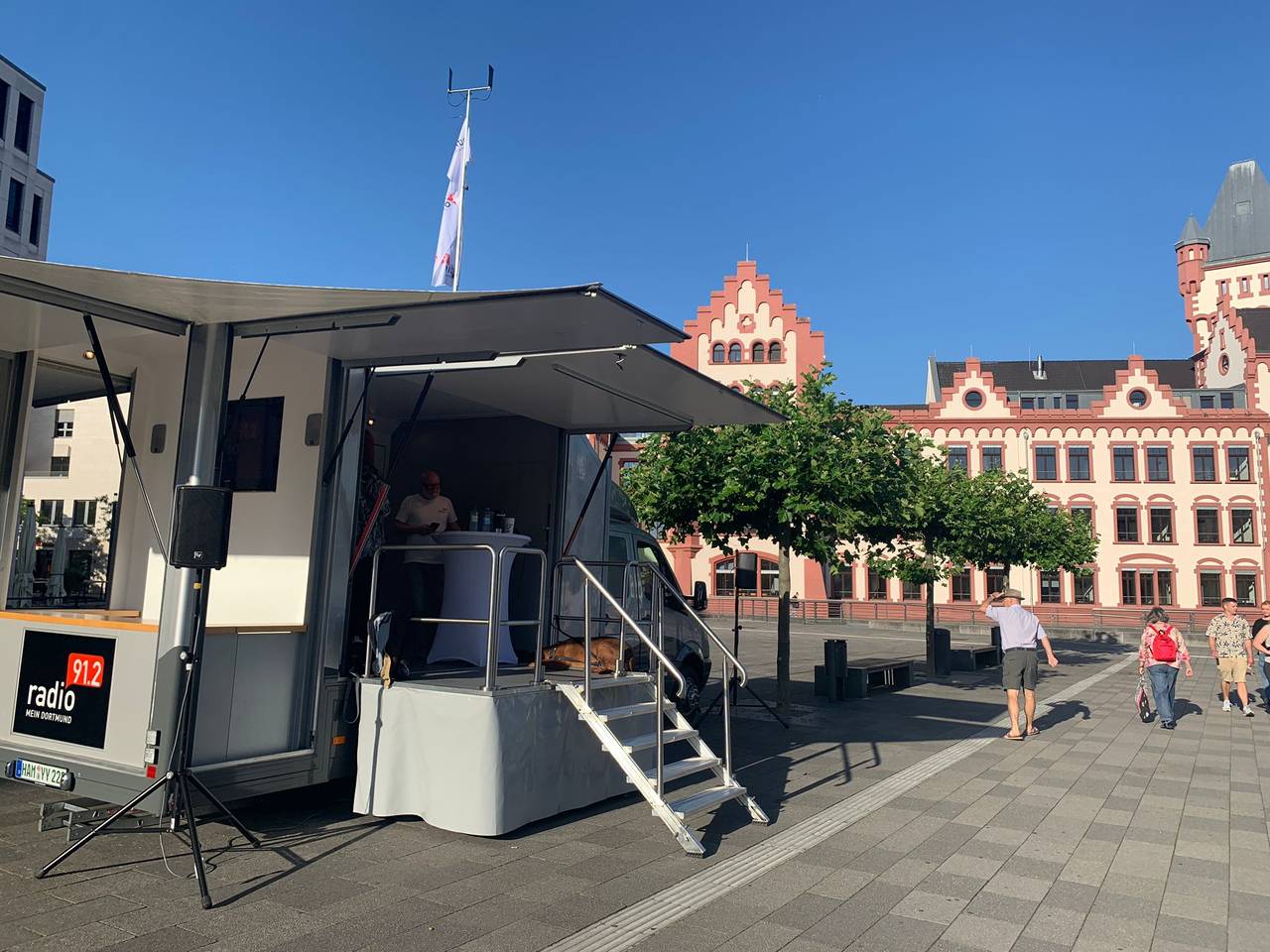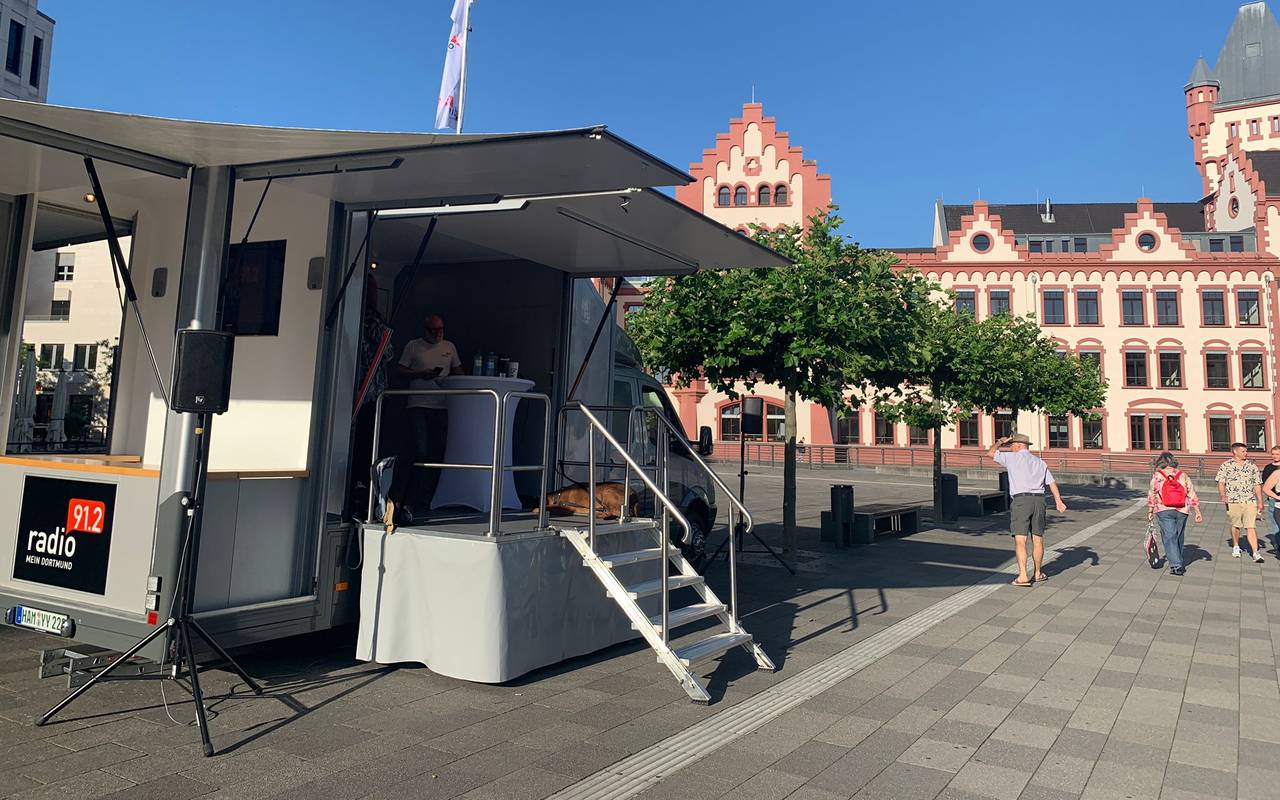 Ihr seid wirklich die allerbesten! Wir treffen euch direkt an der Hörder Burg. Hier haben wir unseren schicken Übertragungswagen aufgebaut. Und gerade ist die EDG vorbeigekommen und hat uns frische Brötchen vorbeigebracht. Fühlen uns fast wie beim Radio 91.2 Bröchenbringer. So viel Liebe gibt's echt nur in Dortmund!