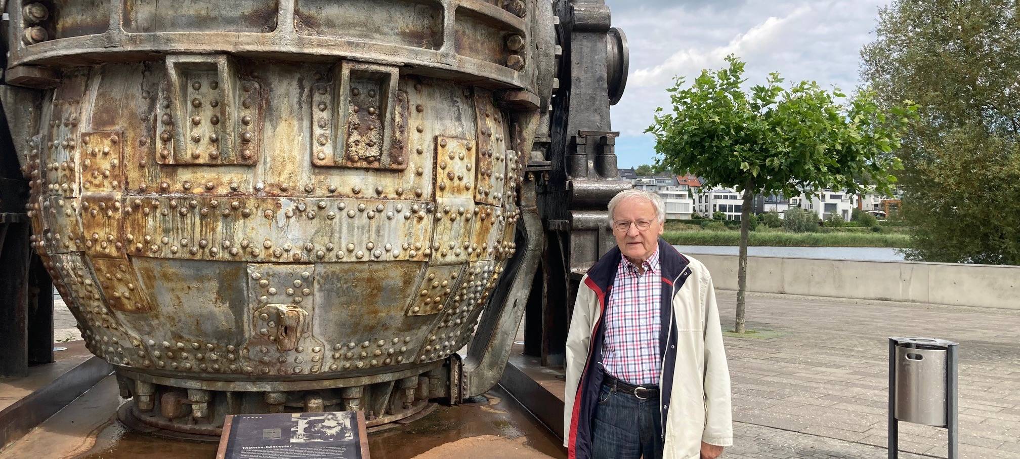 Es sieht aus wie ein großes Ei mit Loch. In der Birne wurde früher bei Hoesch das Roh-Eisen zu Roh-Stahl veredelt. "Durch die Düsen am Boden wurde Luft geblasen und dann wurde der ganze Dreck ungefiltert rausgeblasen und hat den Hörder Himmel verdunkelt", erinnert sich der Dortmunder Willi Garth. Er ist Ehrenvorsitzender des Hörder Heimatvereins. Ursprünglich war geplant, die ausrangierte Thomasbirne zum Teil im See zu versinken. Da hat Willi Garth gesagt: "Nur über meine Leiche." Deswegen steht das Ei nun auf einer Insel und Garth ist quasi so etwas wie der "Retter der Thomasbirne".