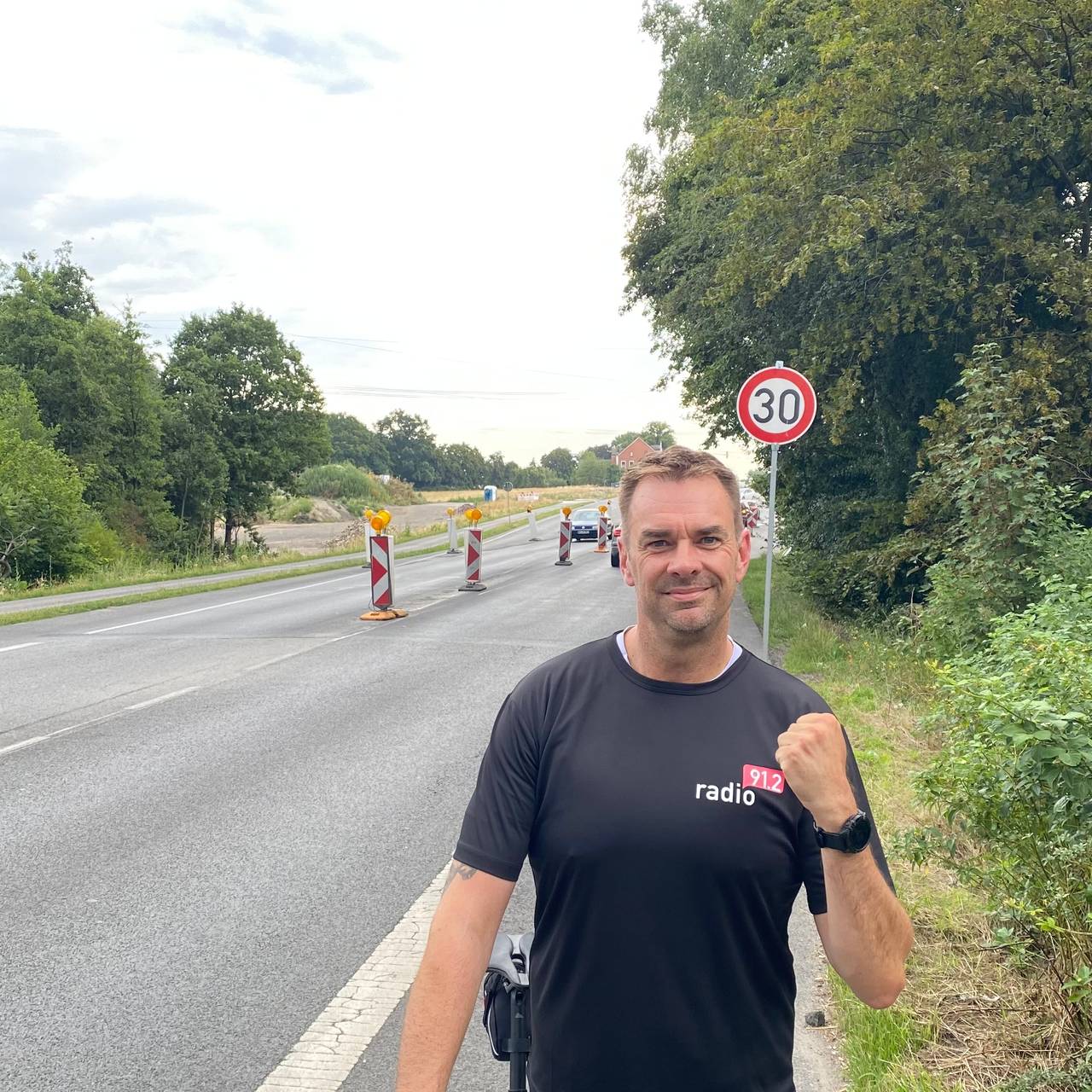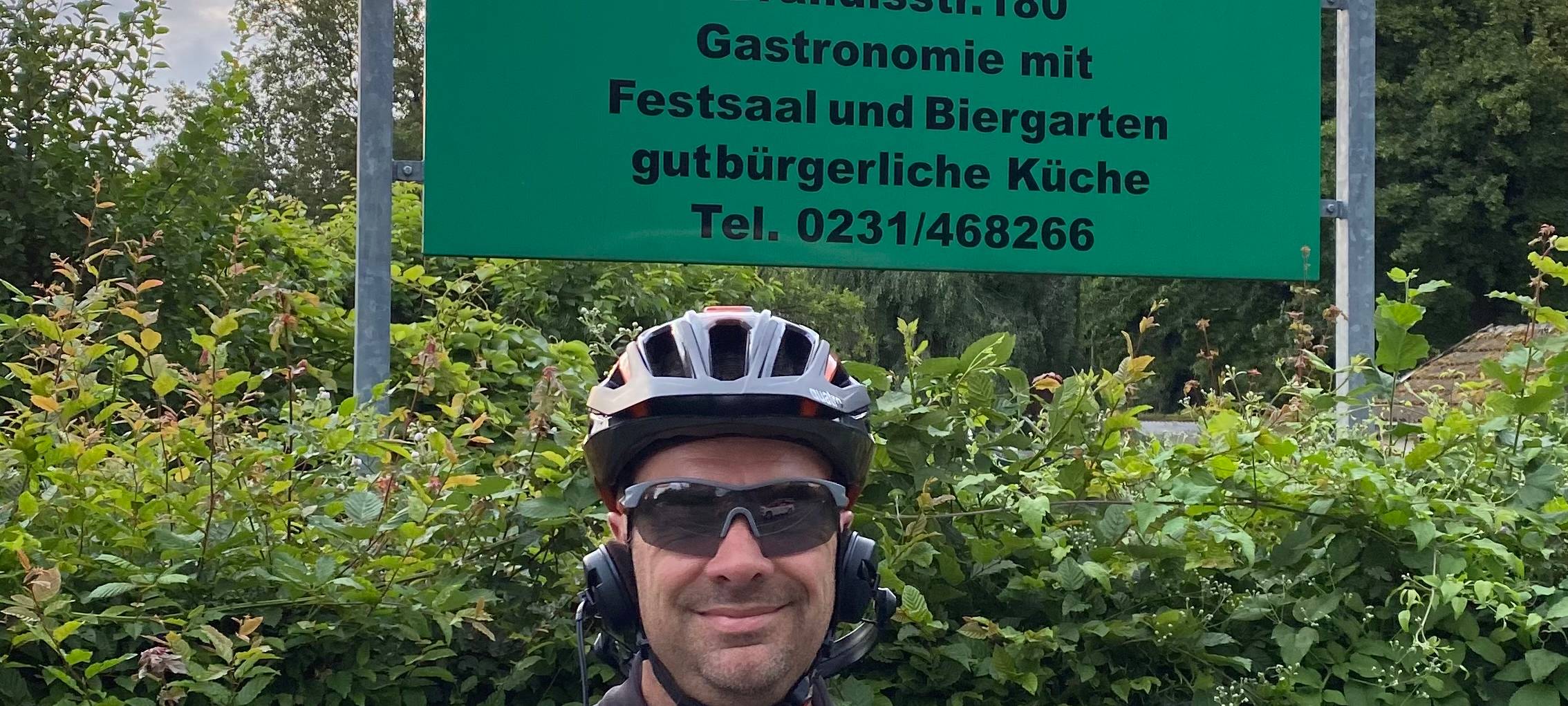 Und das war es schon mit dem Fahrrad für Tim - er ist auf der Evingerstraße in Dortmund-Brechten angekommen. Er steht genau an der Stadtgrenze Dortmund - Lünen. Das Fahrrad kommt jetzt in den Radio 91.2-Bulli und für Tim geht es zu Fuß weiter. 24 Kilometer zurück, das dauert etwas länger.