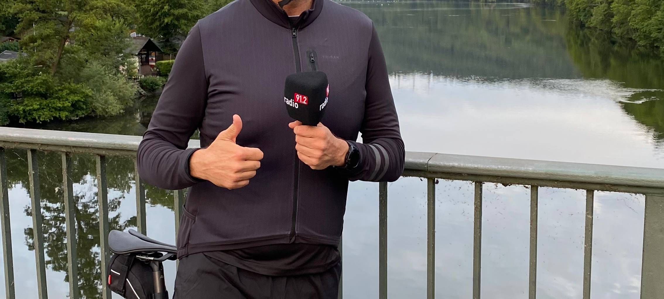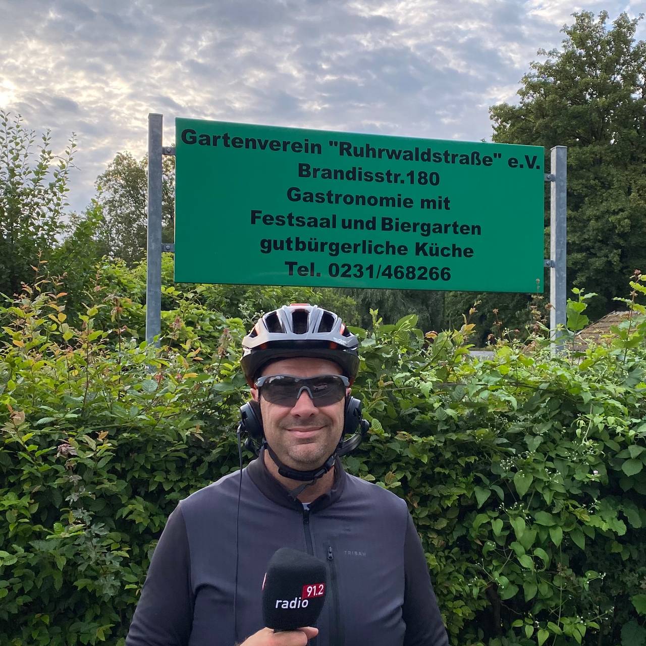Morgens um 6 Uhr startet Radio 91.2-Moderator Tim Schmutzler mit seinem Fahrrad von der Ruhrbrücke am Hengsteysee. Die Strecke die er zurücklegt ist knapp 25 Kilometer lang, das sind ungefähr eineinhalb Stunden Fahrt. Ziel ist dann Dortmund-Brechten. Einmal von der südlichen Stadtgrenze bis hin zur nördlichen Stadtgrenze.