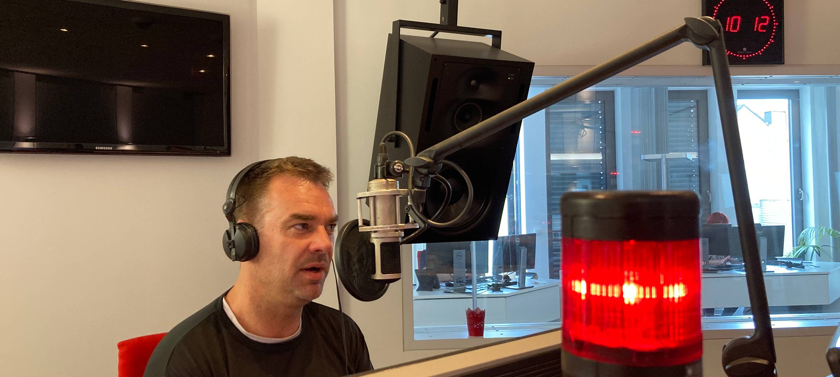 Tim macht einen kurzen Halt im Radio 91.2-Studio