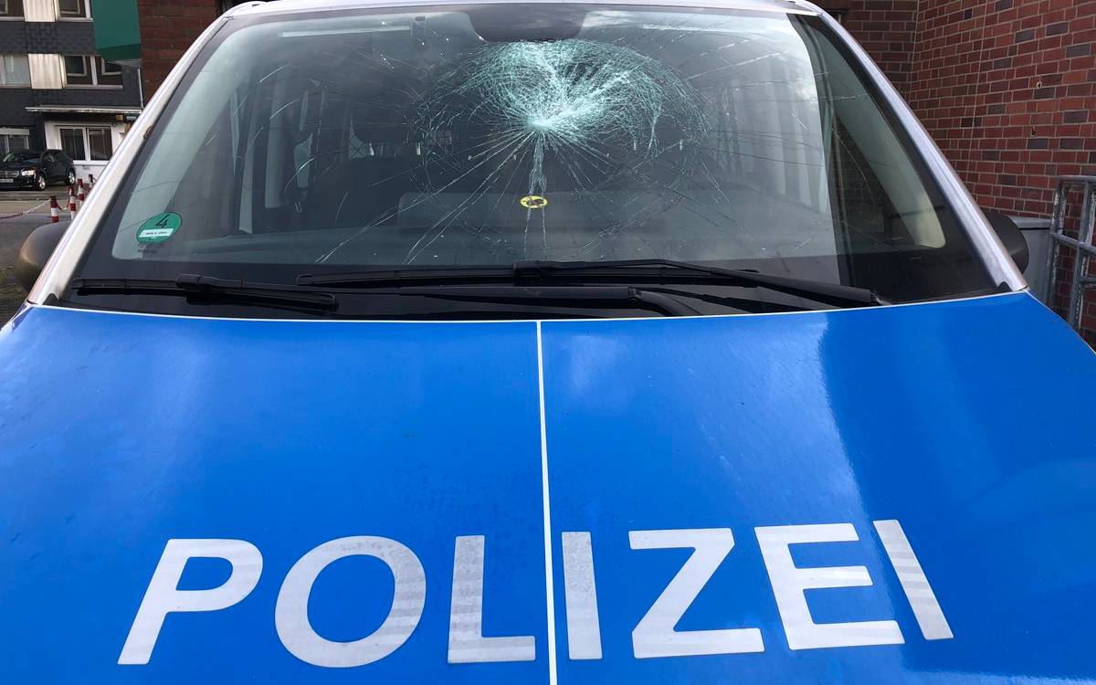 Gegen 0.40 Uhr beobachtete ein 21-jähriger Dortmunder aus seinem Auto heraus, wie ein Mann vor der Polizeiwache mit einem Pflasterstein auf die fünf Streifenwagen einschlug. Als der Dortmunder den Randalierer ansprach, flüchtete der.
