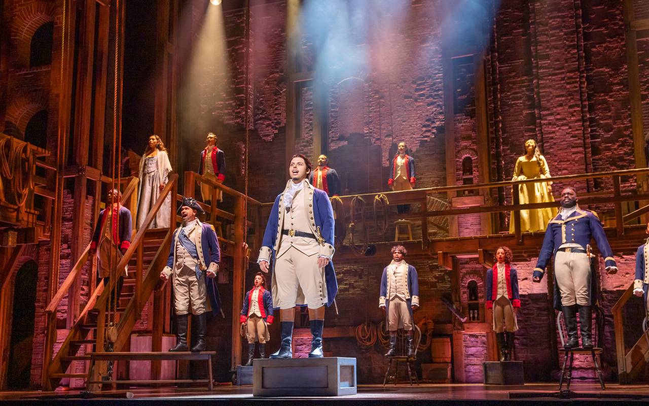 Dem Einwanderer Alexander Hamilton gelingt mit Mut und Wortgewandtheit der soziale Aufstieg. Er kämpft für Unabhängigkeit und Demokratie – das Ganze unterlegt mit einem Mix aus Hip-Hop und Pop. Eine erstaunlich modere Performance in historischen Kostümen und mit aktuellem gesellschaftlichen Bezug – am Broadway bereits ein Riesenhit. Und sogar die Frankfurter Allgemeine Zeitung urteilt: „Das temporeichste Stück in der Geschichte des Musiktheaters“.