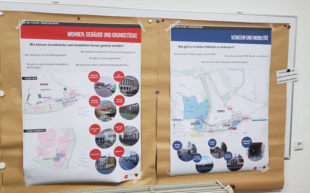 Anwohner in Unterdorstfeld und im Quartier Union West sollen bei der Erneuerung ihres Viertels mitbestimmen. In direkter Nachbarschaft soll unter dem Titel "Smart Rhino" auf den ehemaligen Werksflächen der Hoesch Spundwand ein neues Stadtquartier für Wohnen und Wissenschaft entstehen.