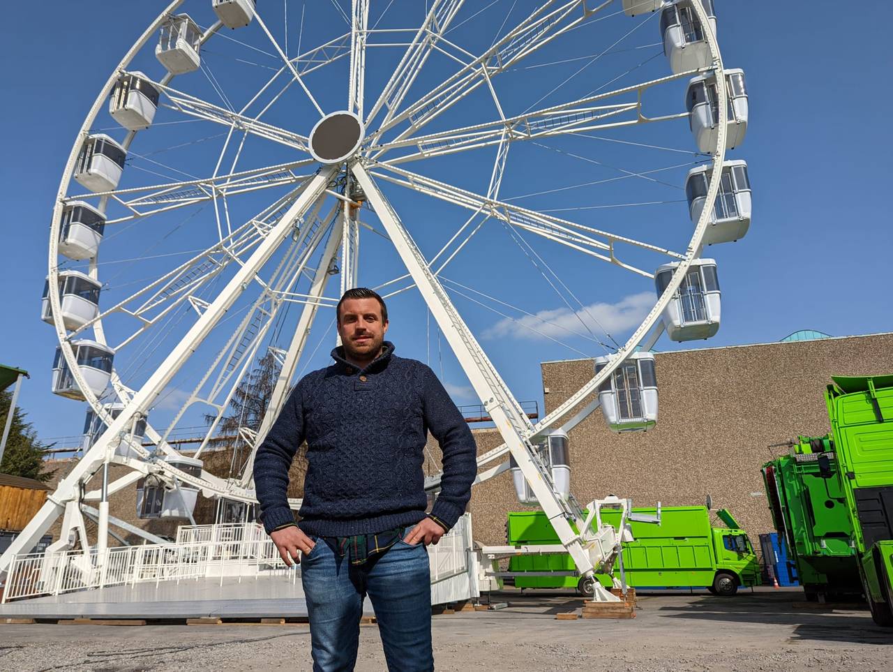 In Dortmund-Marten steht das Riesenrad von Schausteller Sebastian Küchenmeister. Aber in Marten hat keine Kirmes eröffnet, sondern das Riesenrad steht dort aus bürokratischen Gründen...