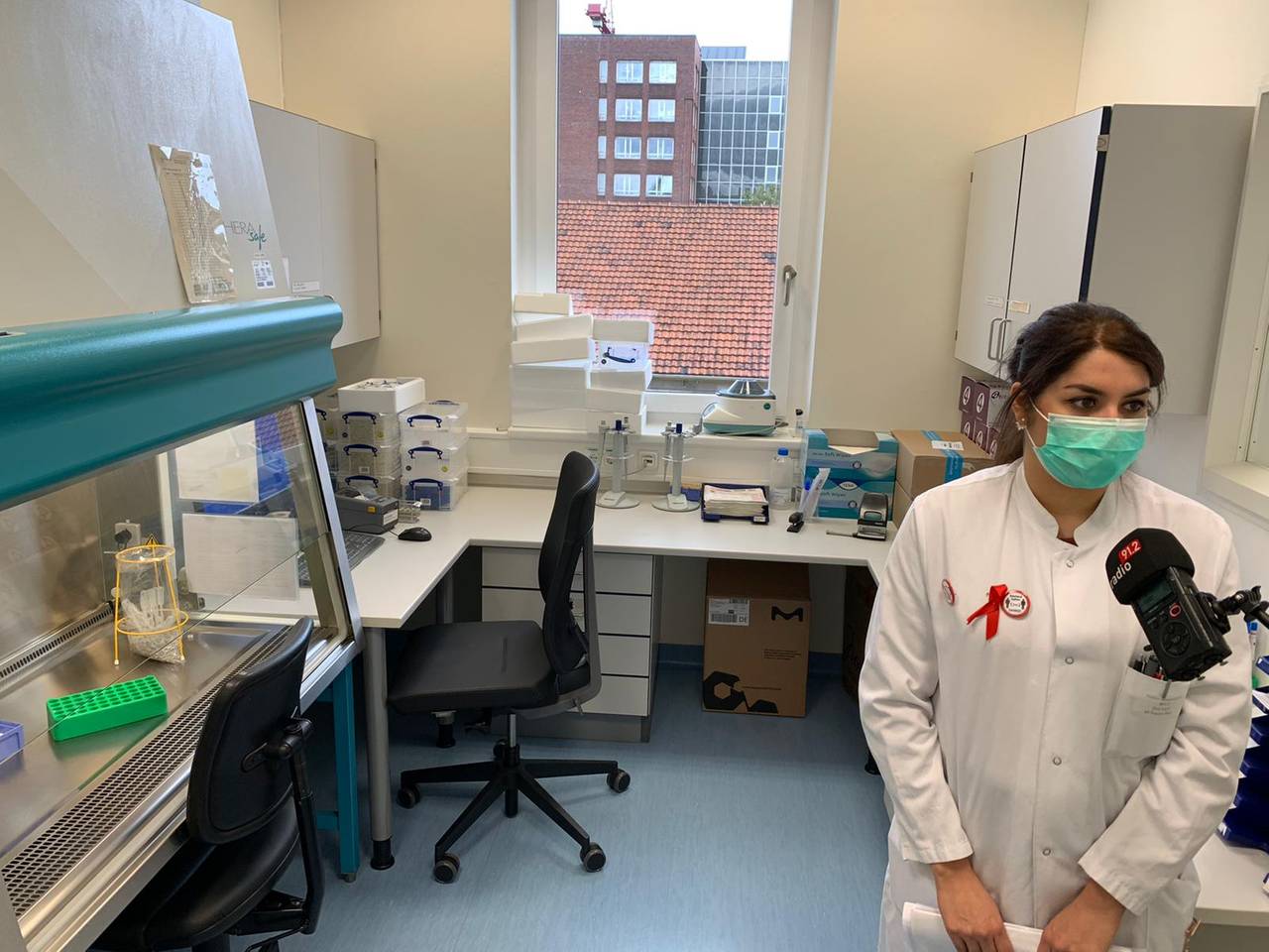 Radio 91.2-Reporterin wurde von den medizinisch-technischen Laborassistentinnen Zina Dahri und Anna Krumrei durch das Labor des Dortmunder Klinikums geführt.