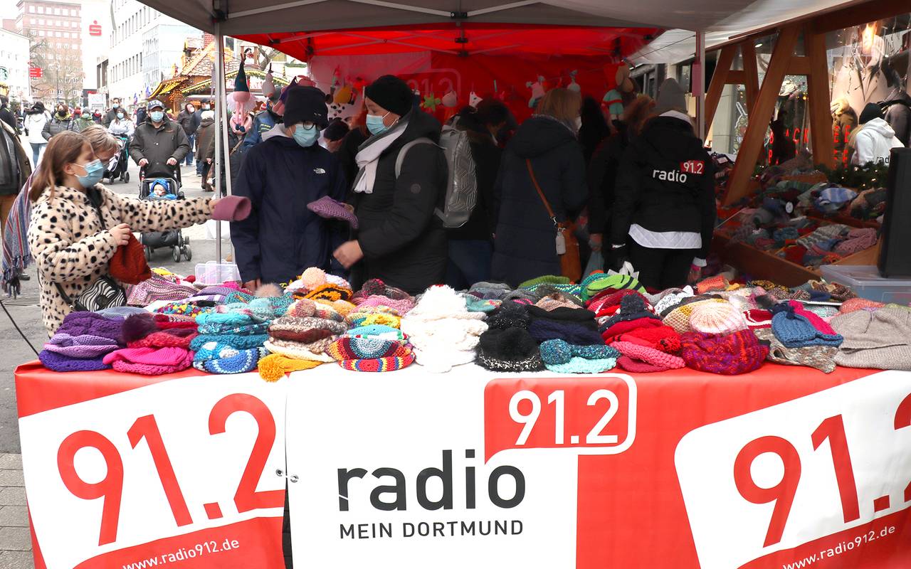 Radio 91.2 sagt "Danke"! Ihr habt rund 6.000 Euro auf dem Weihnachtsmarkt zugunsten unserer Aktion Lichtblicke gespendet. Neun Stunden lang haben wir hunderte selbstgestrickte Schals, Socken und Mützen für Familien und Kinder in Not in NRW verkauft. Die Stimmen aus dem Radio 91.2-Programm haben am Mikrofon die besten Stücke angepriesen und vor Ort für gute Kauflaune gesorgt.