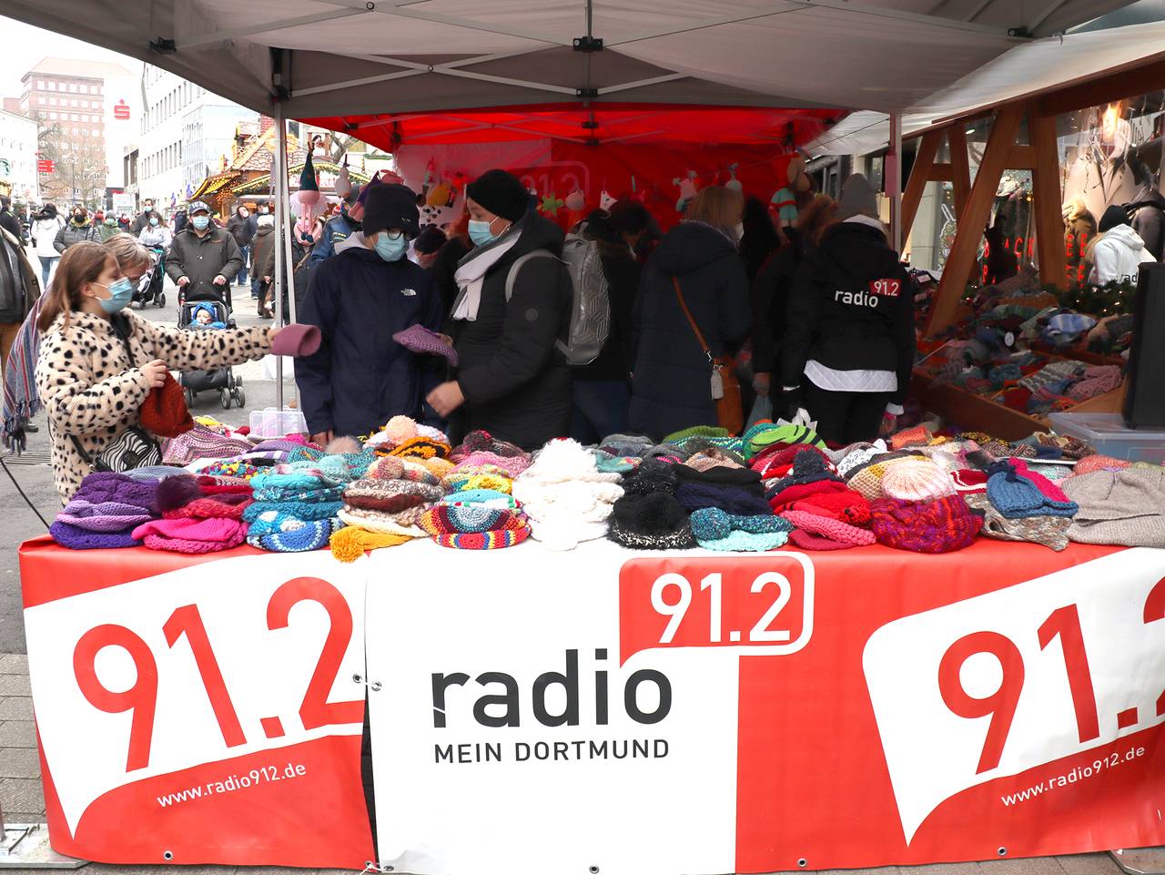 Am Sonntag, den 1. Dezember 2024 wird das Radio 91.2-Team die gespendeten Strickwaren auf einem eigenen Weihnachtsmarktstand verkaufen (12 bis 20 Uhr). Ihr findet uns im Durchgang vom Alten Markt Richtung Westenhellweg und Reinoldikirche, gegenüber vom Thüringer. Der Erlös geht zu 100 Prozent an die Aktion Lichtblicke.