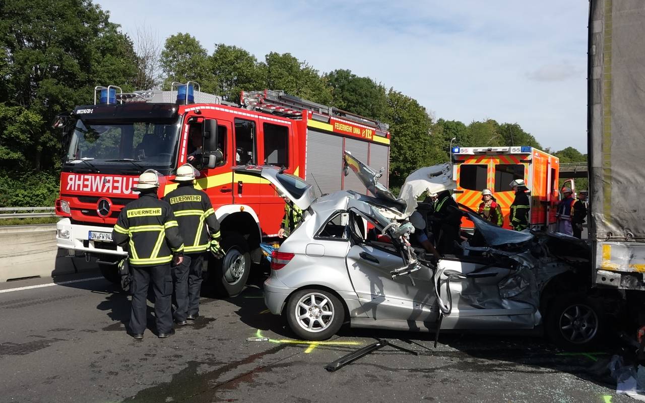 Aufgrund eines schweren Unfalls war die A1 Richtung Bremen zwischen Kreuz Dortmund/Unna und Unna heute Vormittag kurzzeitig komplett gesperrt. Nach ersten Erkenntnissen der Polizei war gegen 10.10 Uhr ein Auto unter einen LKW-Sattelzug geraten.