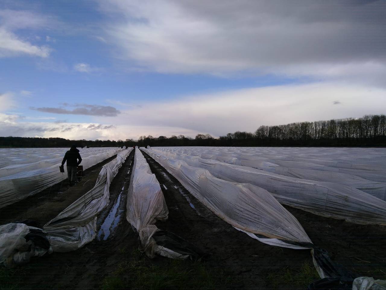 In fein säuberlich gezogenen Reihen ziehen sich weiße Plastikplanen über den kompletten Acker. Die Erde darunter ist zu Hügeln aufgeschüttet - so wächst Spargel am besten. Mittendrin steht Vitus Schulze-Wethmar und kann immer noch nicht glauben, dass es gerade schon wieder anfängt zu schneien.