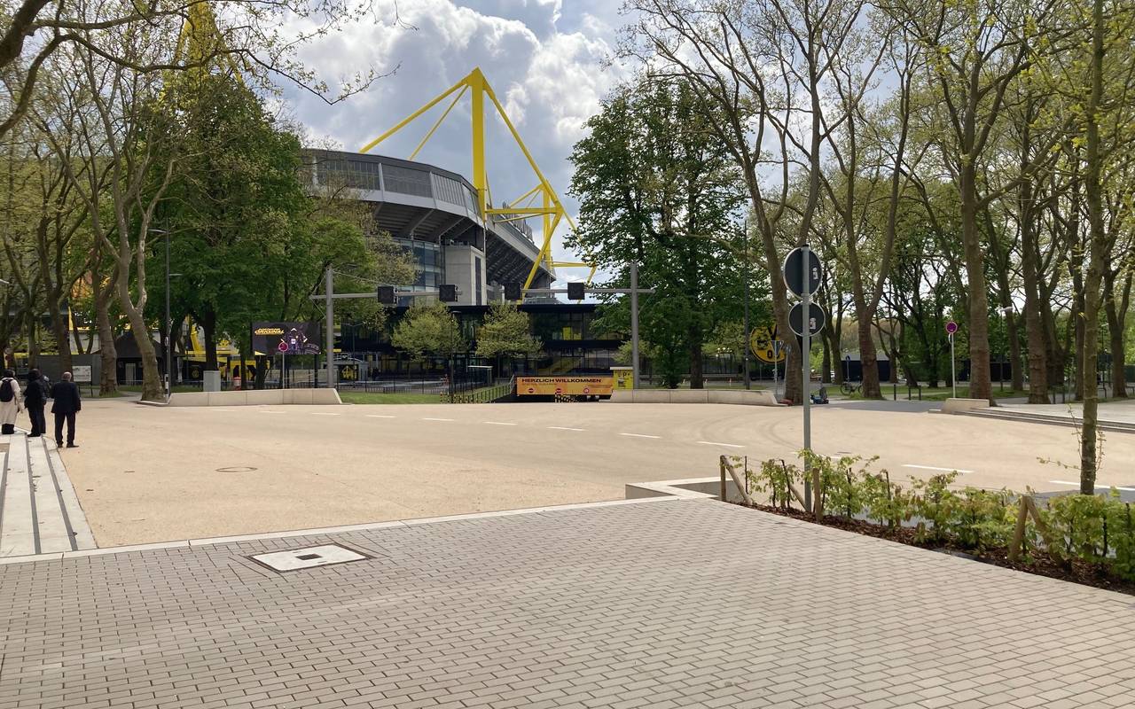 Langfristig soll die Strobelallee am Stadion zur "Erlebnismeile" werden und zwischen Stadion und Westfalenhallen mehr zum Verweilen einladen. Gestern (25.04.) hat die Stadt Dortmund den ersten Bauabschnitt Höhe der Straße Im Rabenloh offiziell fertiggestellt. Im Bereich Im Rabenloh gibt es jetzt breitere Gehwege. Auffällig ist auch der helle, neue Straßenbelag. Außerdem wird auch der Autoverkehr etwas anders geleitet. Vor einem BVB-Spiel gilt: Zwei Fahrspuren für Anreisende, eine Spur für Abreisende. Nach dem Spiel ist es dann umgekehrt.