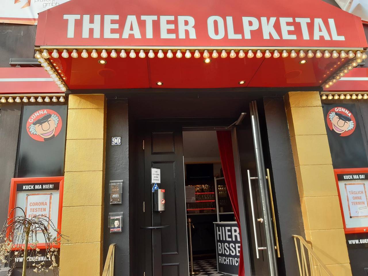 Zwei große weiße Banner hängen links und rechts über dem Eingang. Auf dem einen steht "Corona testen für lau", auf dem anderen steht "Täglich ohne Termin". Ein roter Teppich führt ins Innere. Bruno Knust, auch bekannt als Günna, ist der Besitzer des Theaters. Am Testzentrum verdient er keinen Cent, wie er sagt. Das Leben als Künstler ist aktuell kein Zuckerschlecken.