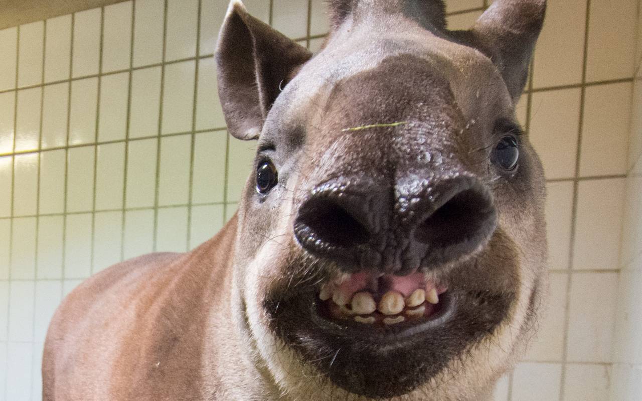 Mit ihrem süßen Lächeln begeistert Fahéj nicht nur die Zoobesucher- auch auf Social Media ist sie dadurch bekannt geworden. Der vier Jahre alte Flachlandtapir aus dem Dortmunder Zoo lächelt aber eigentlich gar nicht. In Wirklichkeit flehmt sie, erklärt Tierpflegerin Sabine Faller. Dadurch können die aus Südamerika stammenden Tapire Gerüche noch intensiver wahrnehmen und besser erkennen. Ihr Rüssel dient den 250 kg schweren Tapiren aber nicht nur zum Riechen- mit ihm kommunizieren sie auch untereinander. Die mit dem Nashorn verwandten Flachlandtapire benutzen ihren multifunktionalen Rüssel dann auch noch zur Futtersuche. Hier im Zoo fressen sie am liebsten Süßes, wie Obst oder Möhrchen.