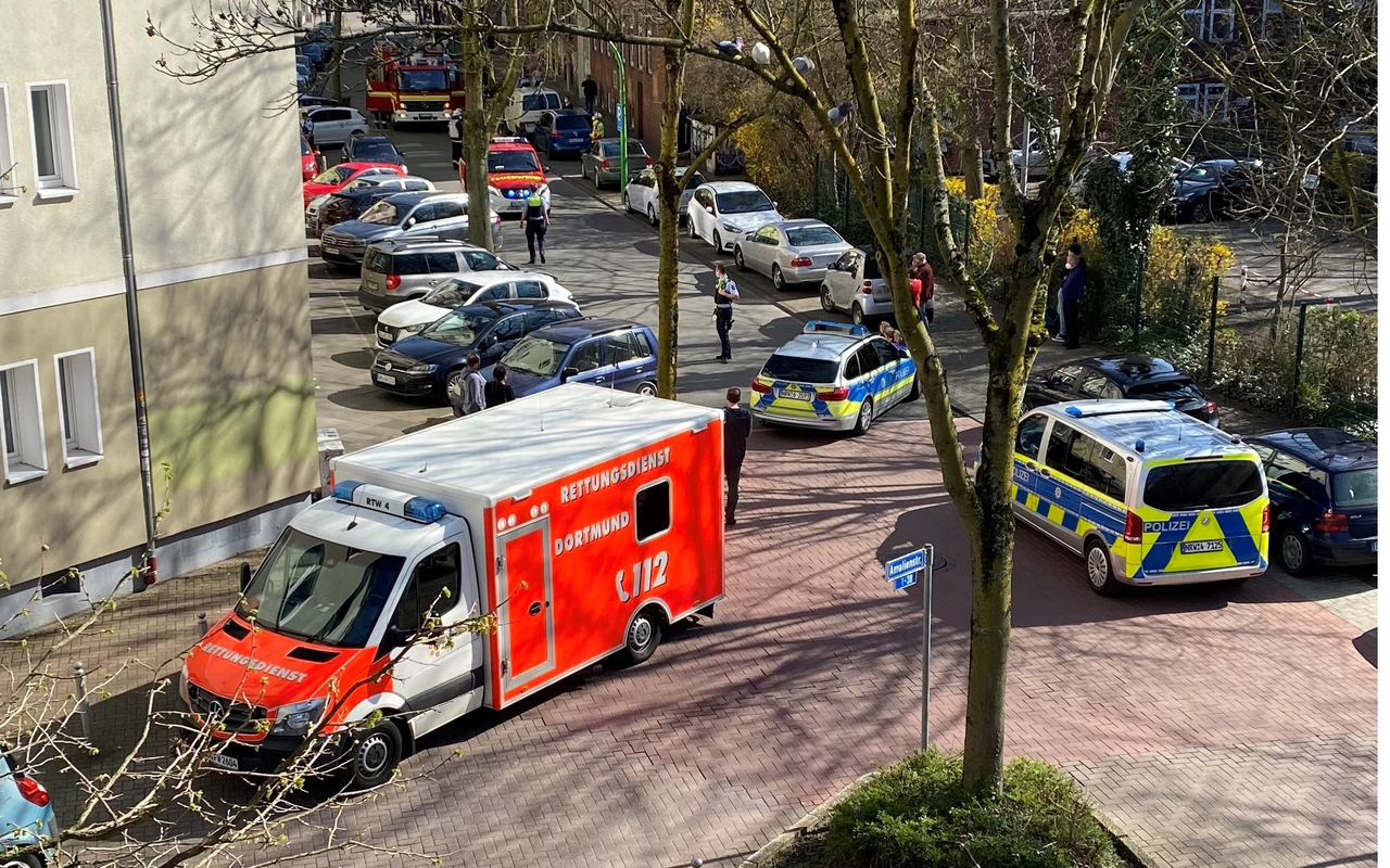 Anwohner hatten den Notruf gewählt. Sie befürchteten, dass aus einem Wohnhaus am Klinikum Gas austreten könnte. Der Verdacht hat sich nicht bestätigt. Nach Angaben eines Feuerwehr-Sprechers hat es sich um eine verwahrloste Wohnung gehandelt. Viel Unrat habe den Gestank verursacht. Die Dortmunder Polizei fand in der Wohnung auch eine tote Frau. Sie sei jedoch wahrscheinlich eines natürlichen Todes gestorben. Anlass für Ermittlungen gebe es nicht, so eine Polizeisprecherin.
