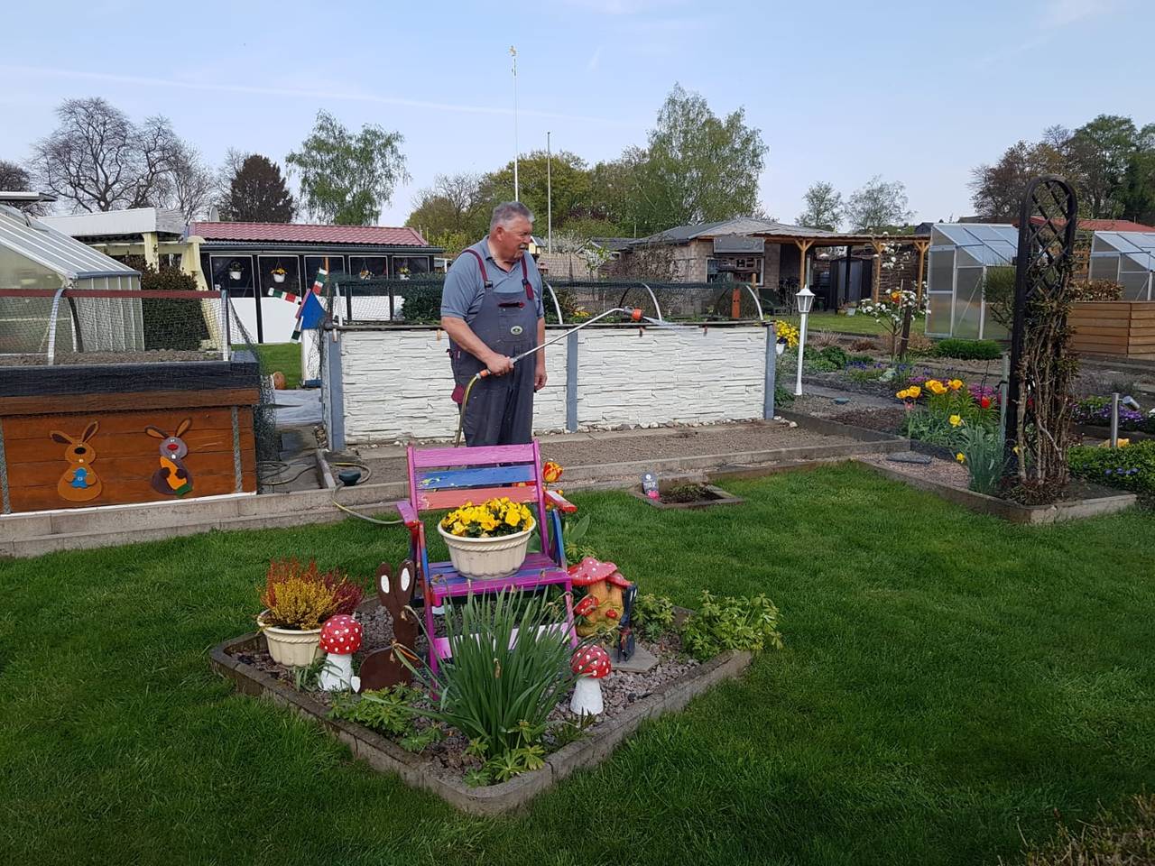 Sobald man das Eingangstor des Kleingartenvereins Glück auf durchquert, ist man in einer anderen Welt: Hier sind die blühenden Obstbäume und bunte Blumen die Stars. Und die Menschen sehen sehr entspannt aus. Viele haben Gartenscheren in der Hand, einige Rasenmäher brummen, aber manche sitzen auch einfach nur vor ihrer Lauben und sehen den Pflanzen beim Wachsen zu.