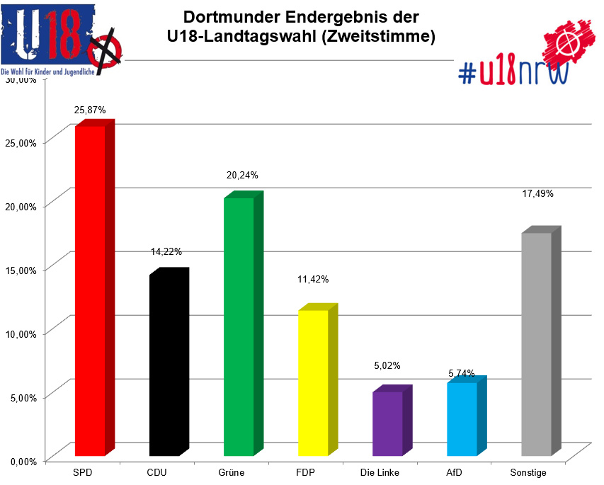 Bei Dortmunder Jugendlichen hätten SPD und Grüne bei der NRW-Landtagswahl die Nase vorne. Das zeigt das Ergebnis der U18-Wahl, hat der Jugendring Dortmund mitgeteilt . Bei uns in Dortmund haben demnach 3.744 Jugendliche ihre Stimmen in über 20 Wahllokalen abgegeben.