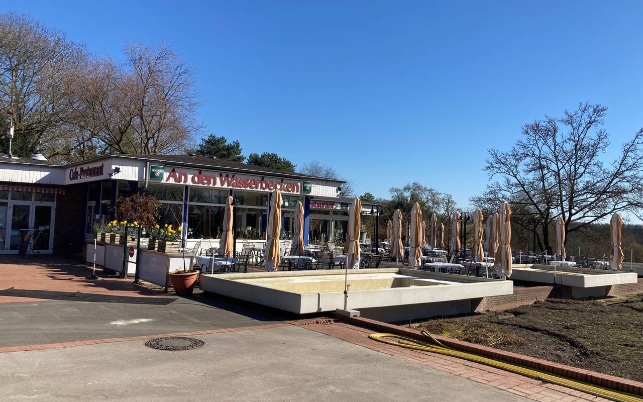 Café und Platz an den Wasserbecken im Westfalenpark in Dortmund werden erneuert