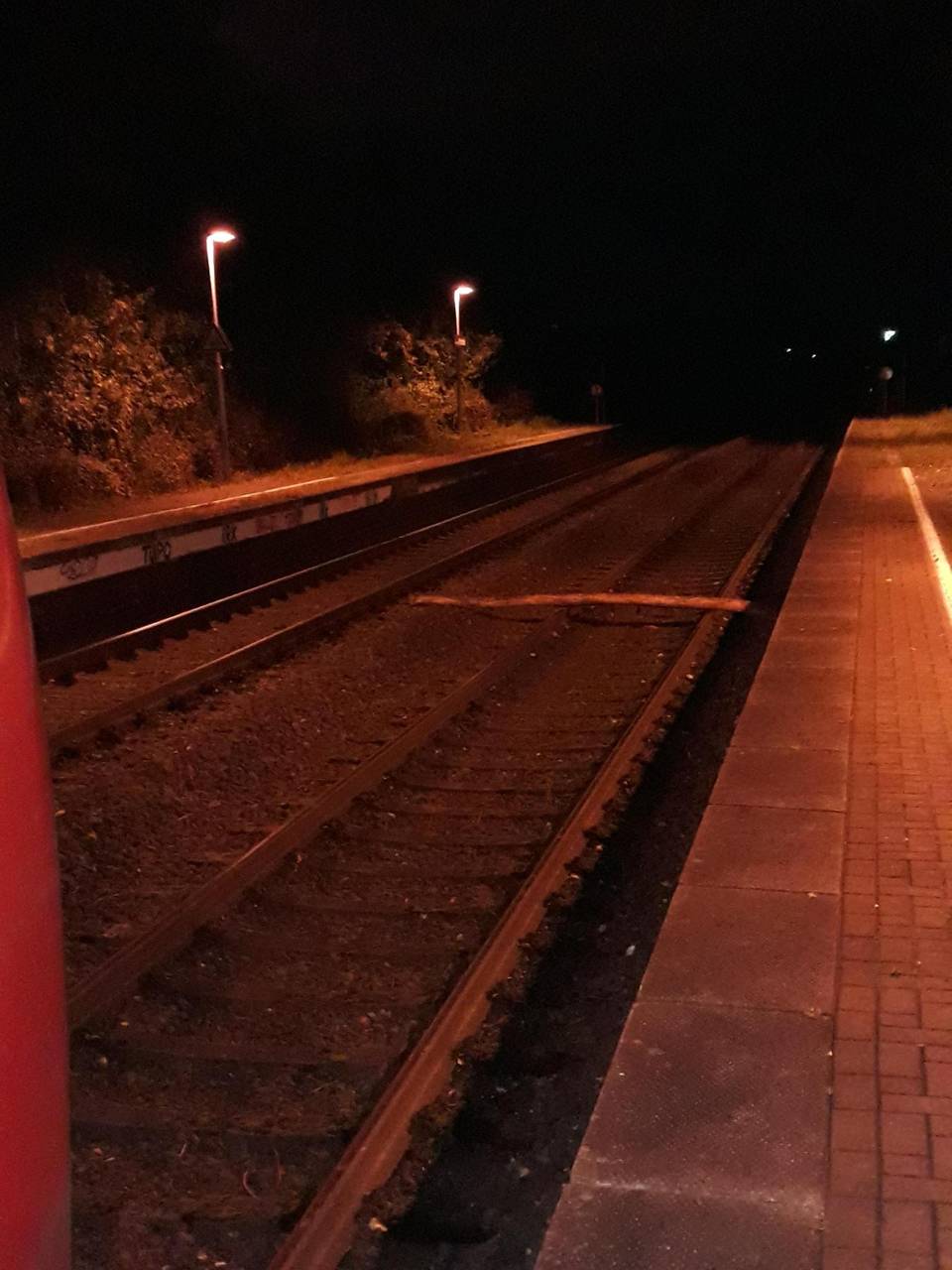 Unbekannte legen Baumstamm auf Bahngleise in Kruckel
