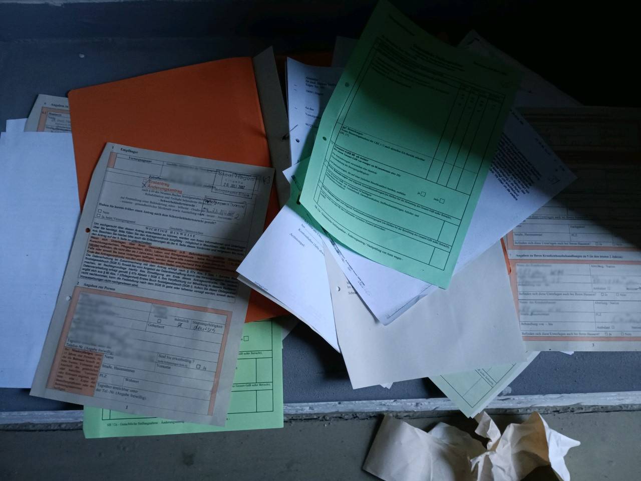Im ehemaligen Versorgungsamt an der Rheinischen Straße in Dortmund sind vertrauliche Akten gefunden worden. Unter anderem handelt es sich dabei um Gesundheitsdaten. Die liegen dort offenbar seit Jahren herum. Das Gebäude ist verlassen und wird seit Monaten von Graffiti-Sprayern, Obdachlosen und Vandalen aufgesucht. In den gefundenen Akten geht es unter anderem um Gesundheitsdaten, Bankdetails und Namenslisten. In dem Versorgungsamt sind Schwerbehindertenausweis- oder Elterngeldanträge bearbeitet worden. Die Daten stammen aus unterschiedlichen Jahren. Die neusten haben den Jahresstempel 2006 und 2007. Das Versorgungsamt ist seit 2011 nicht mehr von der Stadt genutzt worden und ist seitdem in privatem Besitz. Unseren Recherchen zufolge war zuletzt die Hotelkette NOVUM in Besitz der Immobilie an der Rheinischen Straße.
