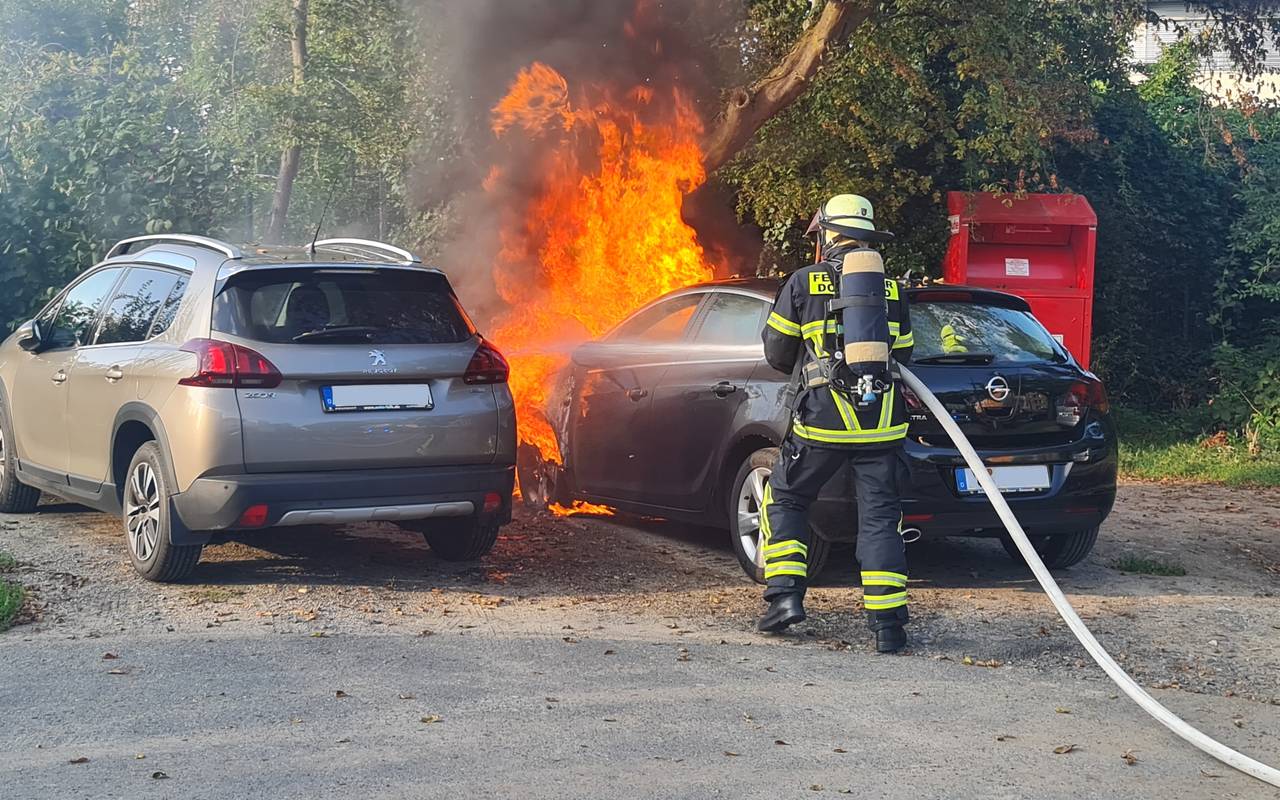 Polizei und Feuerwehr Dortmund melden gleich mehrere Brände. Am Montag (22.08.) hat zunächst gegen 18:45 Uhr ein Autofahrer in Hörde in der Hochofenstraße während der Fahrt Rauch in der Motorhaube bemerkt und schnell angehalten. Direkt nach dem Aussteigen hat das Auto angefangen zu brennen. Die Feuerwehr konnte den Brand zwar schnell löschen, aber ein anderes Auto in der Nähe wurde durch die starke Hitze beschädigt. Hier geht die Polizei Dortmund nicht von Brandstiftung aus.