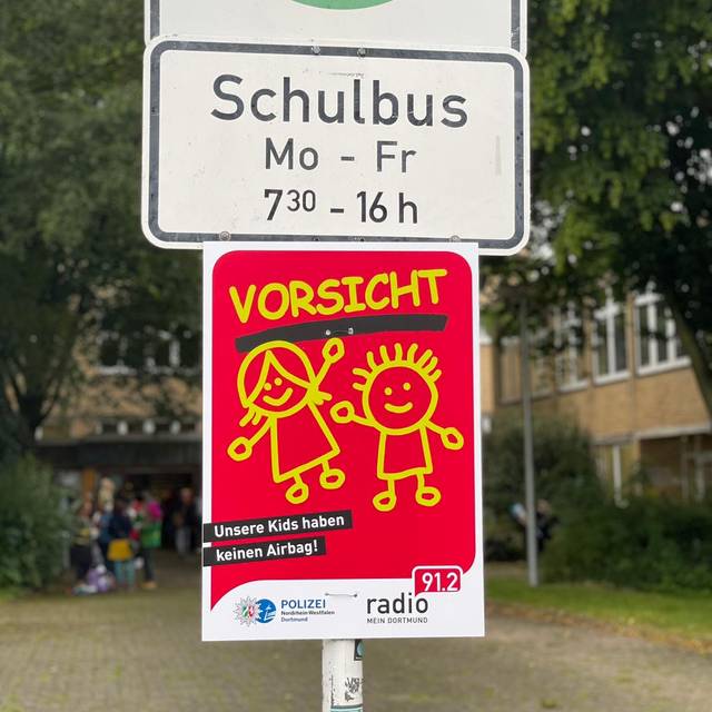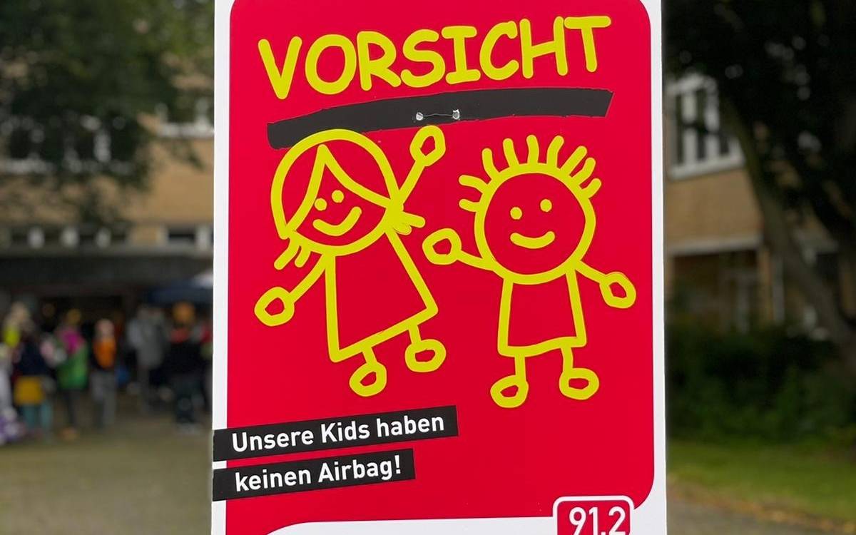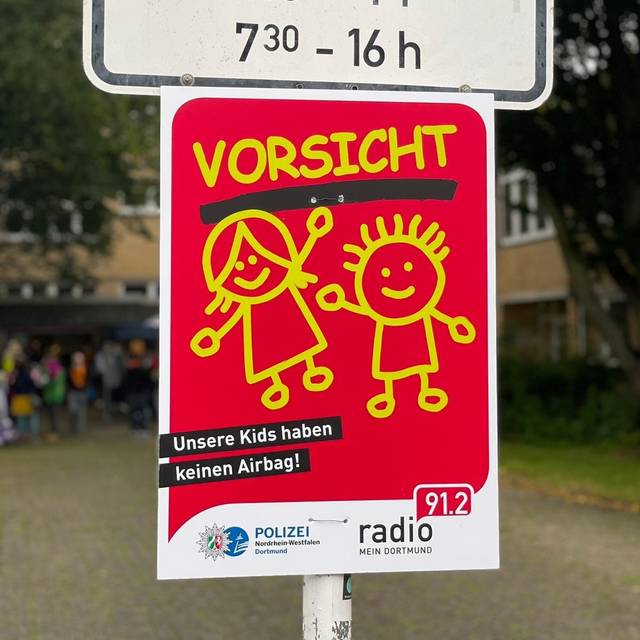 Jetzt in der dunklen Jahreszeit will Radio 91.2 gemeinsam mit der Dortmunder Polizei den Schulweg für Kinder in Dortmund sicherer machen. Dazu haben wir die wetterfesten Plakate nachdrucken lassen, mit der Aufschrift "Vorsicht, unsere Kinds haben keinen Airbag".