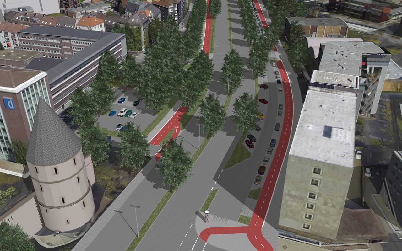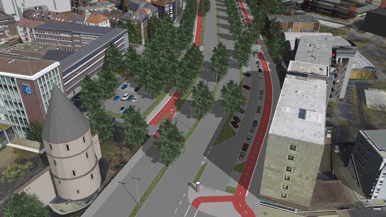 Rund um den Wallring sollen fast vier Meter breite Radwege entstehen, die in beiden Richtungen befahrbar werden.