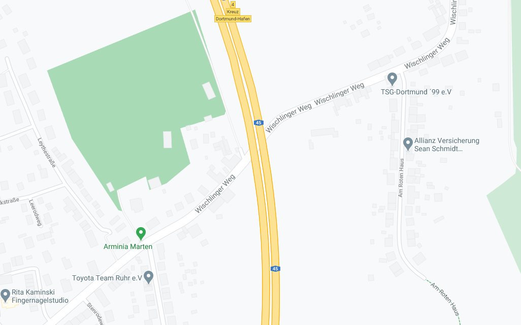 13:50 Uhr: Der Wischlinger Weg ist wegen der bevorstehenden Entschärfung schon jetzt gesperrt. Gegen 14:30 Uhr wird dann der Bereich der A45 zwischen dem Autobahnkreuz "Dortmund-Hafen" und dem Autobahnkreuz "Dortmund-West" in beiden Fahrtrichtungen gesperrt sein. Dortmunder Polizei und Ordnungsamt bitten Autofahrer den Bereich weiträumig zu umfahren.