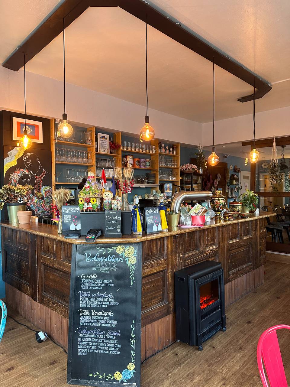 Im Babuschkas Kitchen gibt es Soulfood aus der Ukraine und Georgien. Hier bekommt ihr Frühstück, Mittagessen, Kaffee und Kuchen und natürlich auch Abendessen. Wie die Inhaberin Irina selbst sagt, rollt hier jeder glücklich uns satt aus dem Lokal. Zweimal im Jahr fährt Irinas Mutter zur Oma (Irinas Babuschka) und besorgt dort die typischen Gewürze, wie die bekannte georgische Kräutermischung Chmeli Suneli, Bockshornklee, Koriander (Samen und Blätter) und Ringelblumenblüten. So bekommen die Gerichte im Babuschkas Kitchen ihren einzigartigen Geschmack.