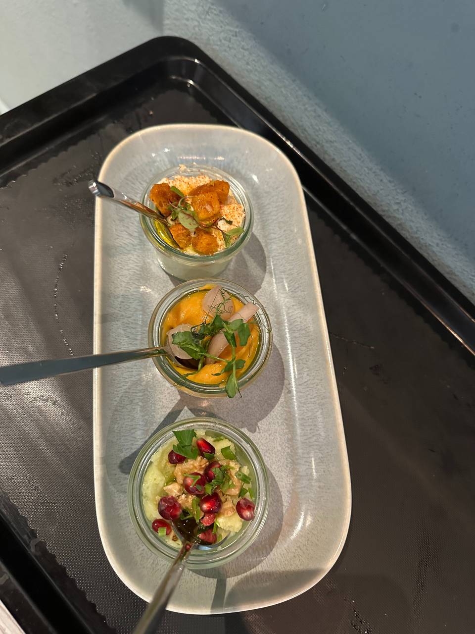 Irina selbst hat die traditionellen Gerichte neu interpretiert. Bei der Kaukasus-Bowl zum Beispiel treffen typisch georgische Anklänge, wie die Walnusspaste oder die Adjika (Paste aus Knoblauch, Chili) auf Römersalat, Sushireis, Römersalat und Rucola, Granatapfelkerne, Mango und Edamame.