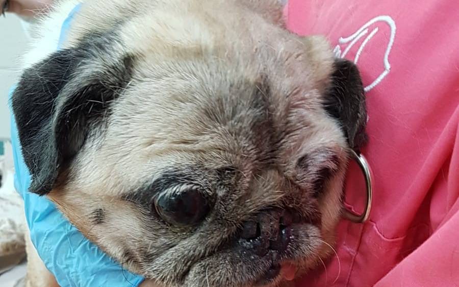 Als die Tierschützer in die Wohnung kamen, fanden sie fünf Hunde, zum Teil schwer krank, extrem verfilzt oder mit einem Geschirr, das bereits in die Haut eingewachsen war. Drei Hunde und den Hasen hat der Besitzer freiwillig herausgegeben.