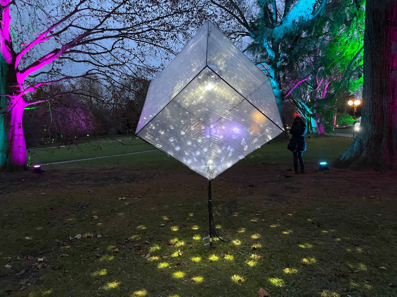 Viele romantische Licht-Szenarien säumen einen rund zwei Kilometer langen Rundweg. Ein zehn Meter langer Kristall aus Weidengeflecht, Strichmännchen auf dem Vordach des Florianturms oder Projektionen auf einer Wasserfontäne - in diesem Jahr gibt es noch mehr Licht-Installationen und Objekte. Das Winterleuchten wird voraussichtlich bis zum 9. Januar zu sehen sein. Obwohl es draußen im Westfalenpark stattfindet, gelten die Maskenpflicht und 2G.