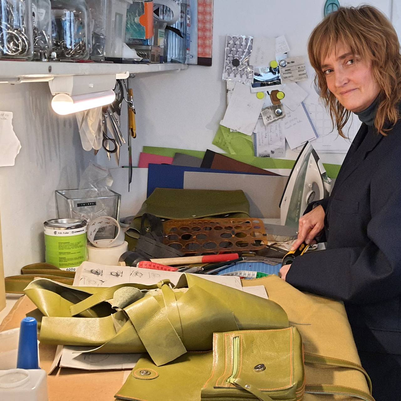 1. Alexandra Lippert designed und näht ihre handgefertigten farbigen Taschen und Accessoires alle selbst. Sie fertigt auch nach Kundenwünschen und hat auch noch Zeit für Kunst.