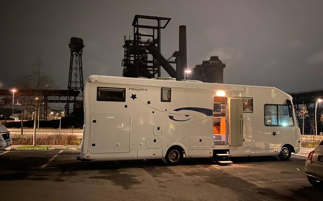 Bianca Schäfer ist Leiterin des Restaurants "Das Hoesch". Das Restaurant ist natürlich dicht, aber zwei Wohnmobile in der Nähe, die sind offen! Auf einem kleinen Esstisch mit Besteck steht ein brennendes Teelicht in einem orangenen Glas. Martina Gelhausen und Andreas Schulte-Hoveling aus Lütgendortmund haben es sich in dem Wohnmobil gemütlich gemacht. Beide finden die Kulisse des ehemaligen Hochofens auf Phoenix-West besonders toll.