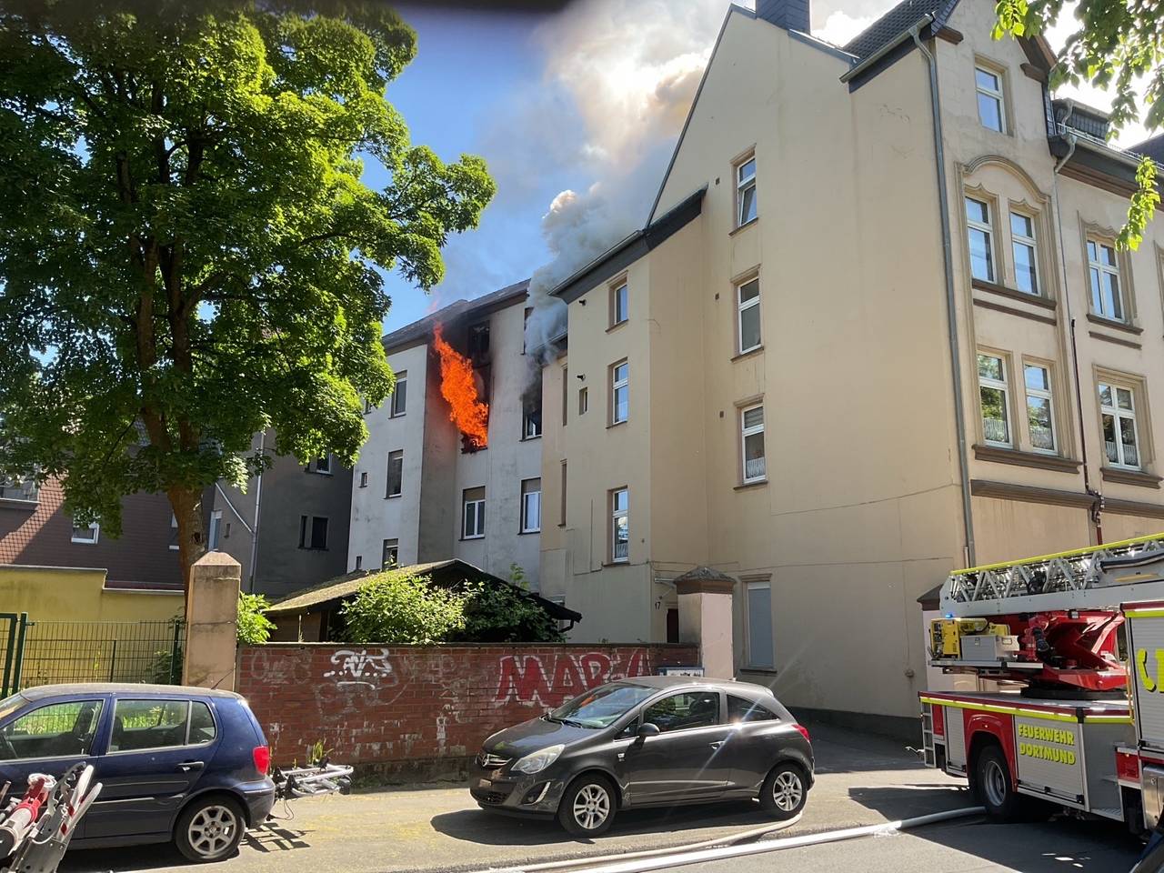 Der Brand war um kurz nach halb 12 in einer Wohnung im zweiten Stock eines Mehrfamilienhauses ausgebrochen. Laut Feuerwehr war der Rauch schon von weitem zu sehen. Die Feuerwehleute konnten einen Menschen mit einer Drehleiter aus dem dritten Obergeschoss retten und mit Verdacht auf Rauchgasvergiftung ins Krankenhaus bringen. In der Brandwohnung entdeckten die Einsatzkräfte dann die Leiche. Laut Feuerwehr ist der Brand mittlerweile gelöscht, Einsatzkräfte suchen aktuell nach Glutnestern. Brand- und Todesursache muss die Polizei noch ermitteln. Wegen des Feuerwehreinsatzes wurden die Straße Froschlake und die Germaniastraße gesperrt. Die Dortmunder Feuerwehr war mit 90 Kräften vor Ort.