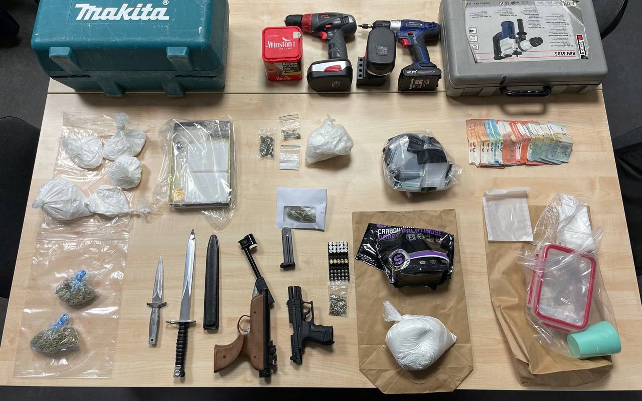 Neben diversen Drogen und Utensilien zu deren Bearbeitung wurden verschiedene Waffen sichergestellt, darunter eine PTB-Waffe, eine Luftpistole und ein Stilett. Zudem fanden sich im Keller hochwertige Werkzeugmaschinen, die aus Diebstählen stammen könnten.