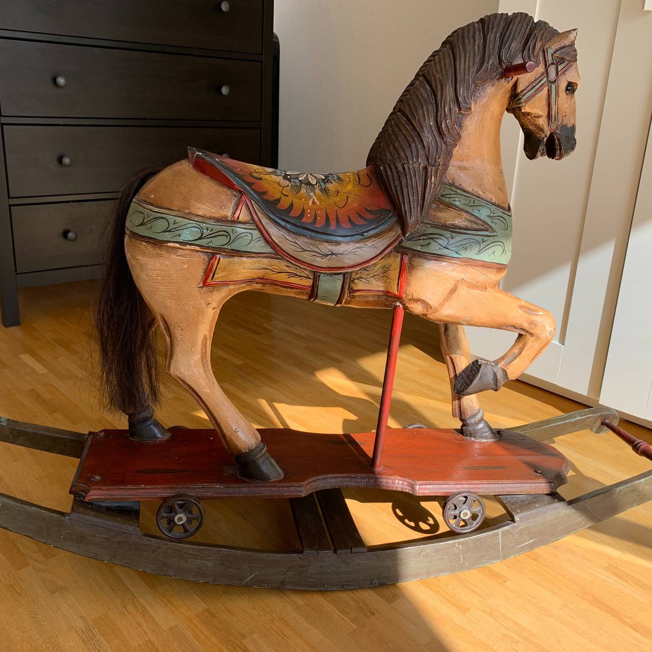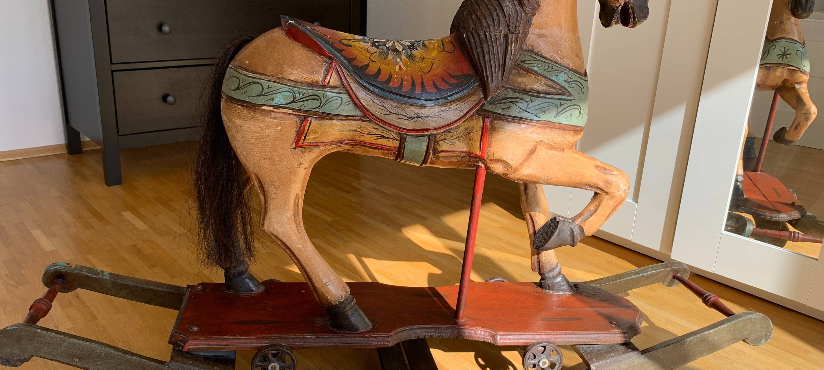 Annas Schätzchen ist ein Schaukelpferd aus Holz. Es sieht aus wie eins von diesen Karussellpferden, die an alten historischen Karussells zu finden sind - nur ein paar Nummern kleiner. Das Pferd hat Anna kurz nach ihrem Umzug nach Dortmund auf einem Trödelmarkt an der Rennbahn in Wambel gefunden.