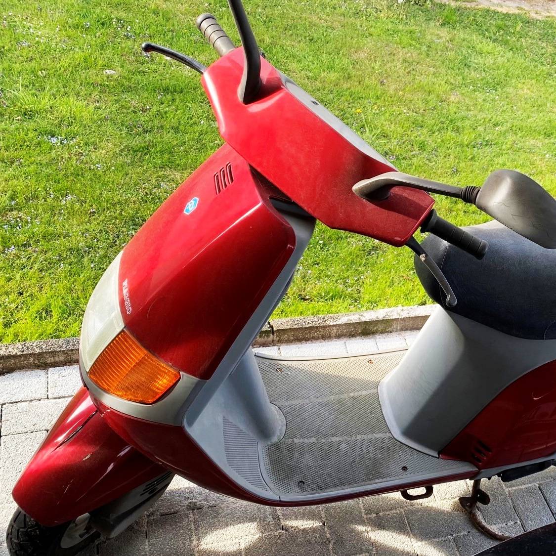 Florian Joswig hat sein Schätzchen schon vor ein paar Jahren von seinem Opa geschenkt bekommen. Es ist ein roter Piaggio Roller aus den 90ern. Der Roller springt meistens auch nur noch an, wenn Florian mit Starthilfe-Spray nachhilft - aber dann fährt er tatsächlich noch. Und deshalb will ich er ihn auch einfach nicht abgeben.