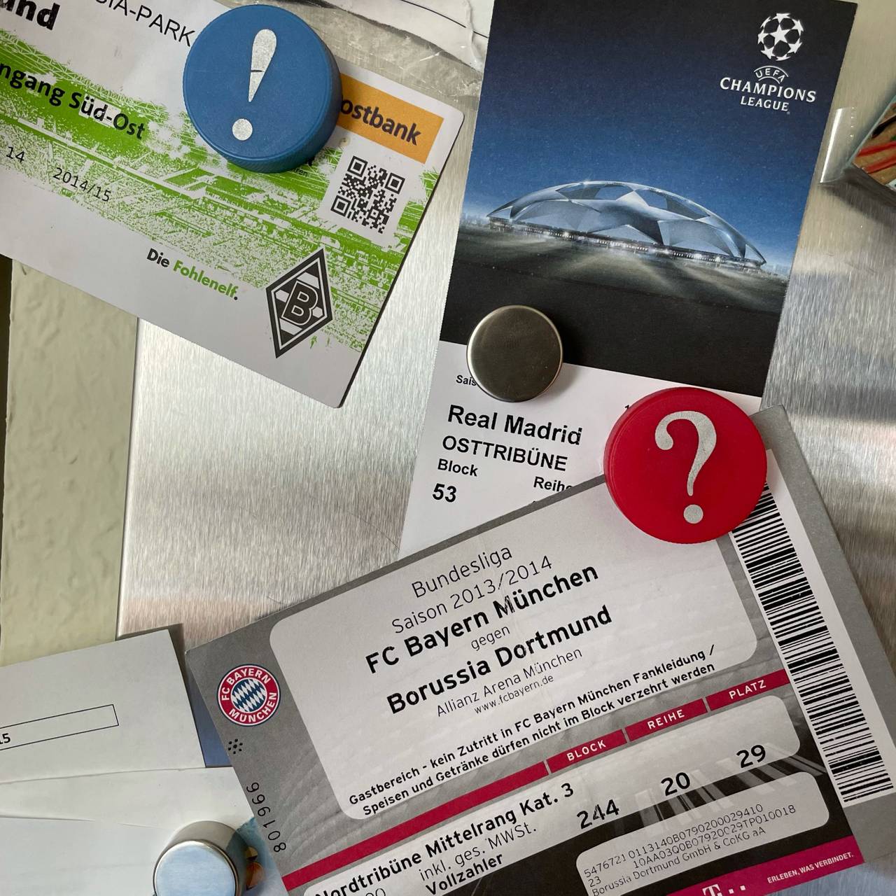 Gleich zwei Dortmunder Schätzchen hängen an Lennart Beissners Pinnwand: Zwei Eintrittskarten für ganz besondere BVB-Spiele! Einmal ein Ticket vom Auswärtsspiel 2014 vom BVB in München - am Ende steht’s 3:0 für den BVB. Und: Champions-League-Halbfinale 2013 gegen Real Madrid. 4:1 gewinnt der BVB, mit vier Toren von Lewandowski.