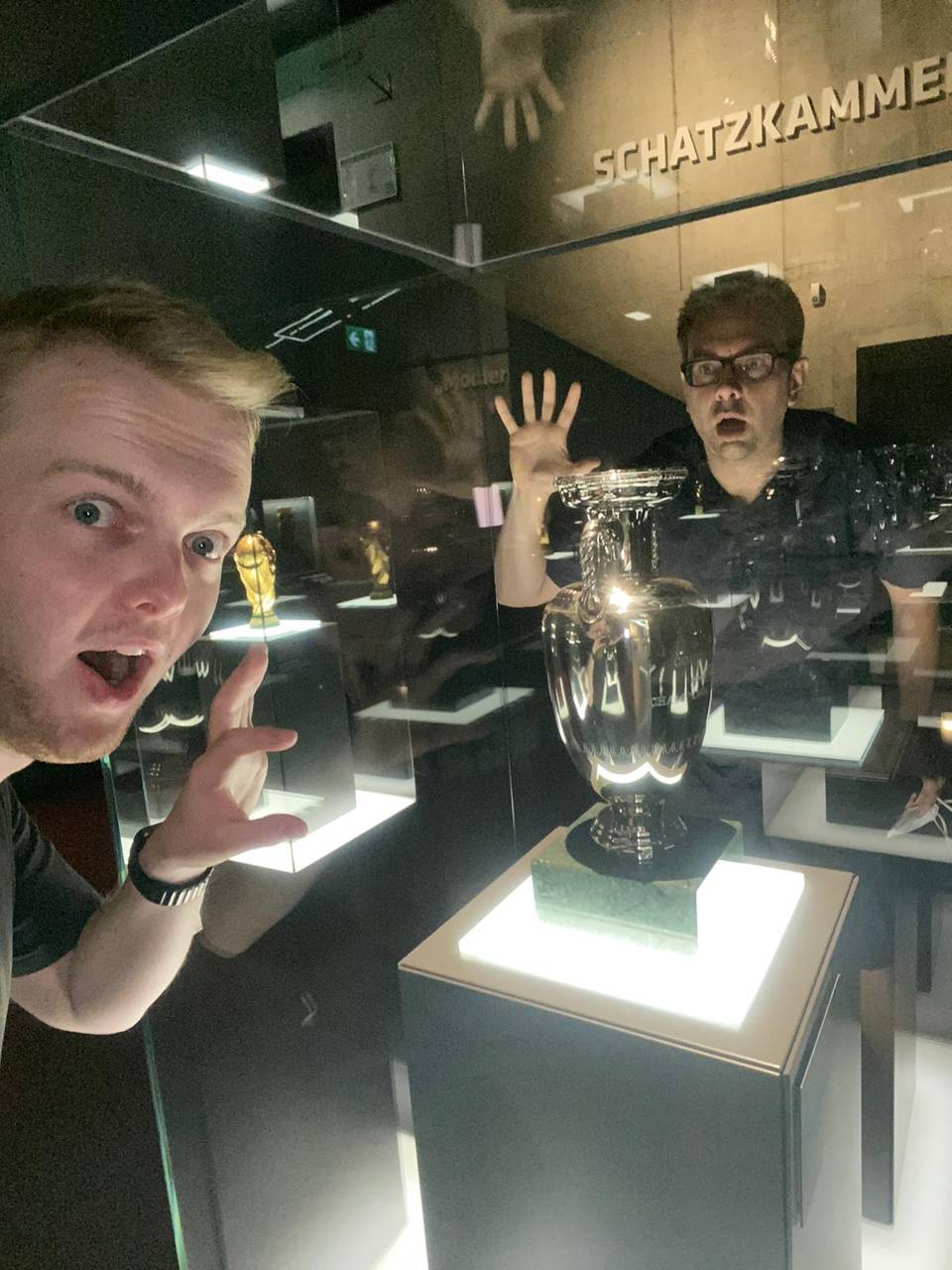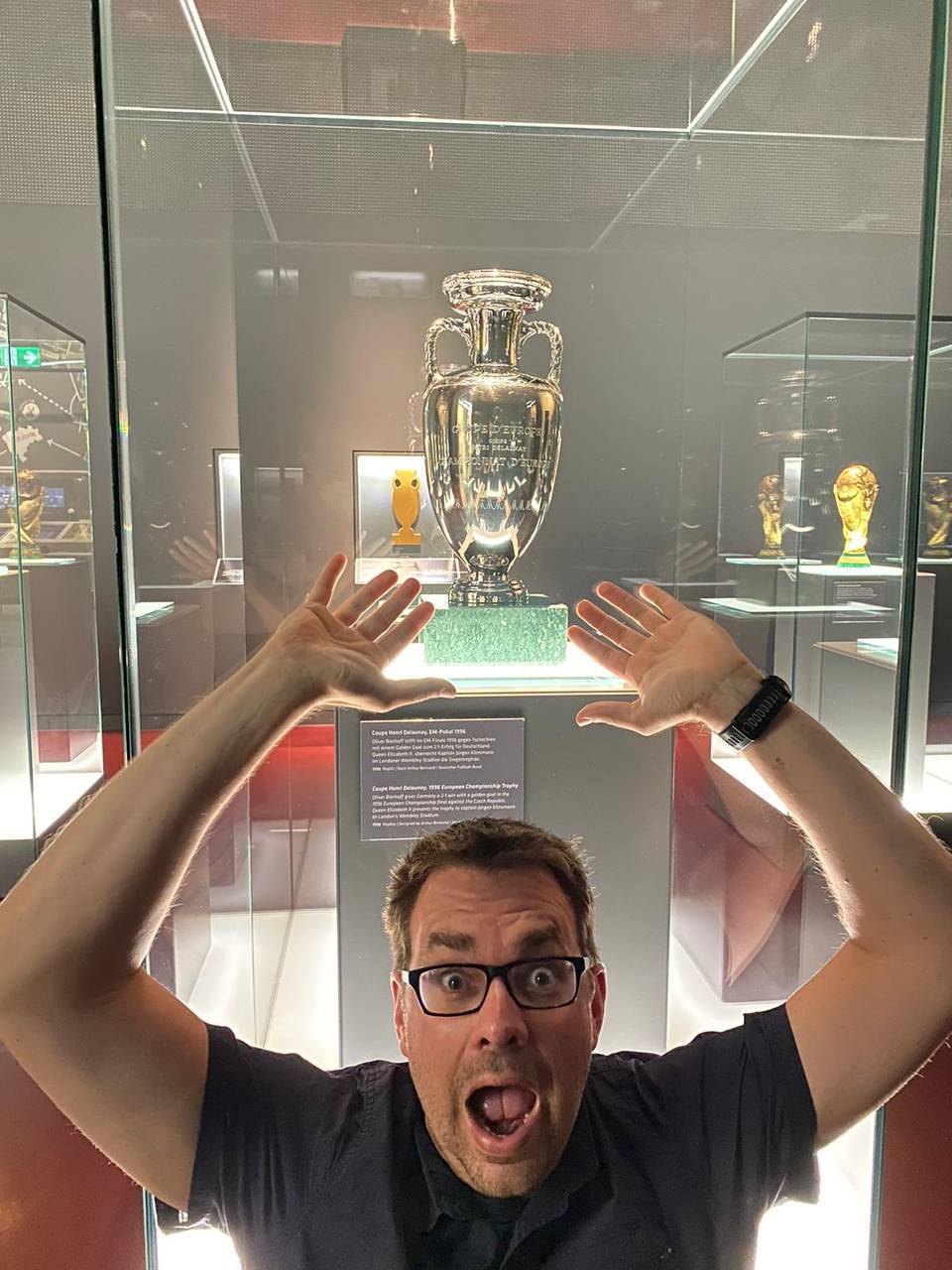 Das erste Deutschland-Spiel in der Europameisterschaft steht an. Deshalb haben Tim Schmutzler und Christopher Deppe vom GMD-Team dem Deutschen Fußballmuseum einen Besuch abgestattet und ehrfürchtig die WM- und EM-Pokale bestaunt.